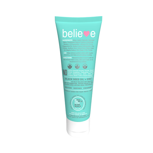 I've been in the all-natural/holistic health world for a number of years and have tried a bunch of various fluoride-free "all-natural" toothpastes... A lot of them often have weird textures, tastes, or don't even make my breath smell good haha. This Believe Mint toothpaste is seriously a game changer. It's one of the few toothpaste brands that I completely trust, with ingredients I can pronounce, that supports a fantastic cause, and that actually makes my mouth feel so clean after use. I will be a Believer for life!